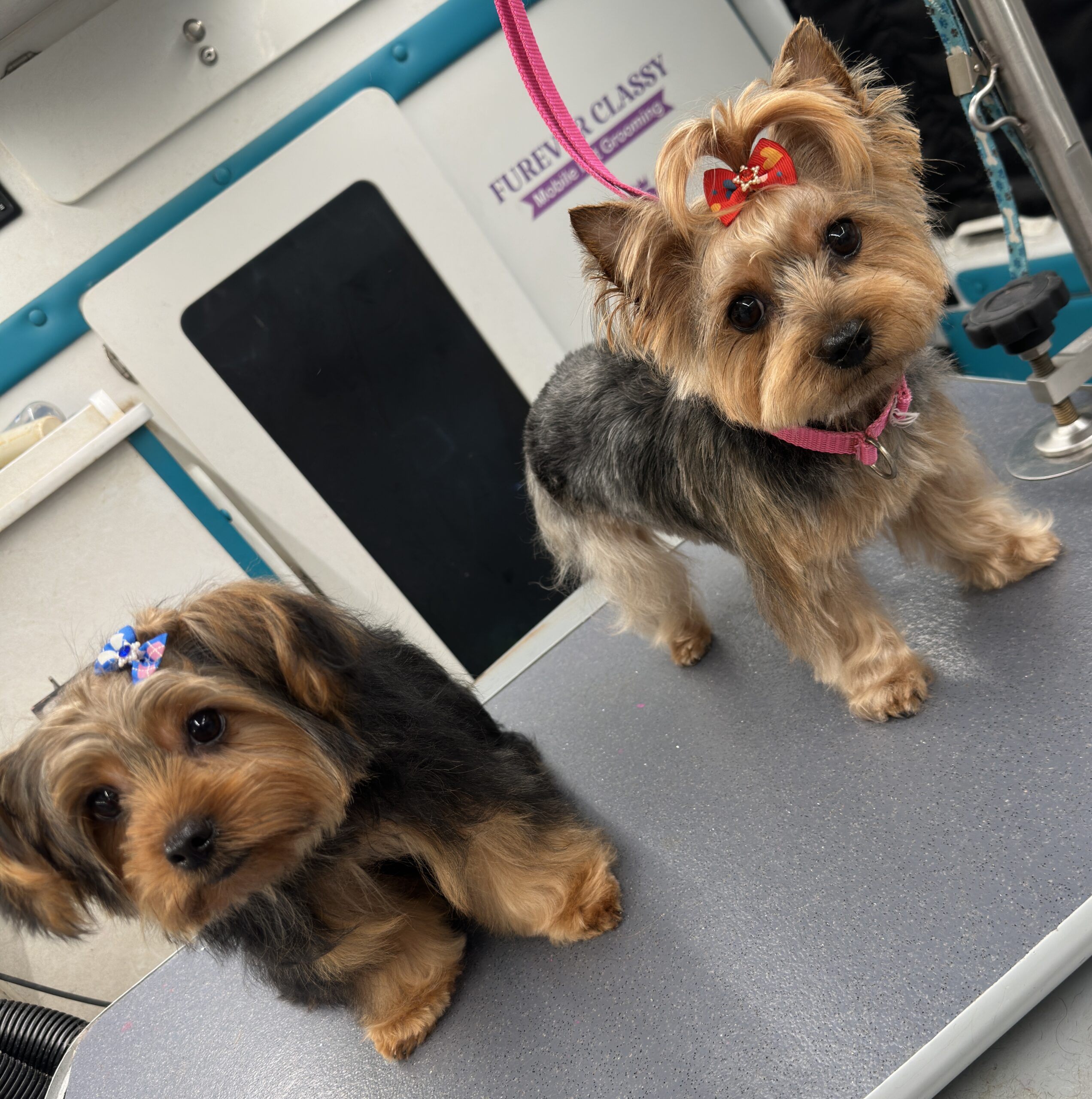 "Deja is an amazing groomer! My Australian labradoodles are high anxiety and have been a challenge to groom. I was so fortunate to find Deja and Furever Classy. She is so patient, skilled and loving. I’ve been so happy with her work You will not go wrong with hiring her to groom your pups!"